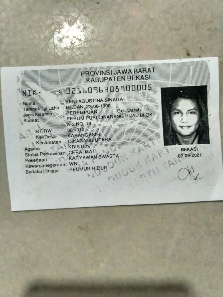 Adapun BPKB Sepeda motor Honda Vario 125cc yang hilang dengan Atas nama Yeni Agustina Sinaga beralamat Kampung harapan baru RT 02 RW 12 Cikarang kota-cikarang Utara-Bekasi