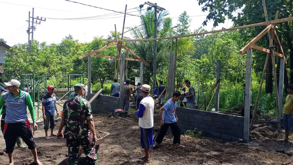 Blitar - Dengan penuh semangat, Babinsa Koramil 0808/09 Sutojayan Kodim 0808/Blitar Serka Sapari bersama warga masyarakat, menggelar kegiatan kerja bakti untuk membantu membuat rumah warga binaannya, di Kel. Kembangarum Kec. Sutojayan Kab. Blitar, Minggu (12/2/2023).