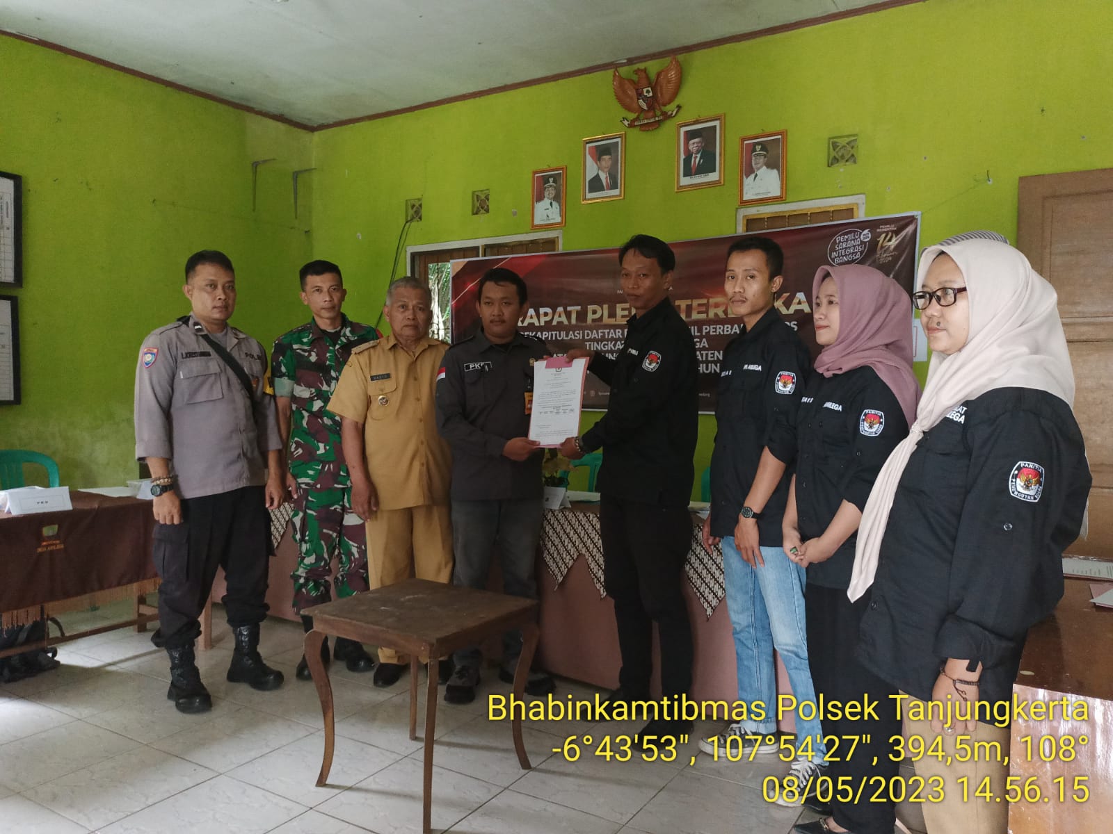 Tanjungkerta, Polsek Tanjungkerta Polres Sumedang Telah menghadiri kegiatan Rapat Pleno Terbuka Rekapitulasi Daftar Pemilih Hasil Perbaikan DPS Pada Pemilu Tahun 2024 PPS Desa se Kec. Tanjungkerta Kab. Sumedang yang bertempat di Aula/Gor Sekretariat PPS Desa se Kec. Tanjungkerta Kab. Sumedang. Senin (08/05/2023)