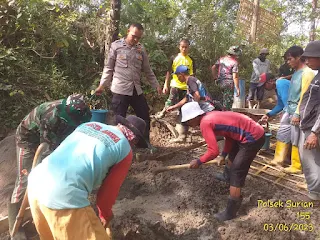Bhabinkamtibmas Desa Ranggasari dan Wanajaya Aipda Arif Kustiana bersama Kepala Desa dan Perangkat Desa Ranggasari dan masyarakat Serta AnggotaTNI, melaksanakan kegiatan kerja bakti Program TTMD pembangunan jalan Bujil yang menghubungkan Desa Wanajaya Kecamatan Surian dengan Desa Kamal Kec Tanjungmedar Kab. Sumedang dalam rangka pelaksanakan Program Sinergitas TNI-POLRI bersama masyarakat.