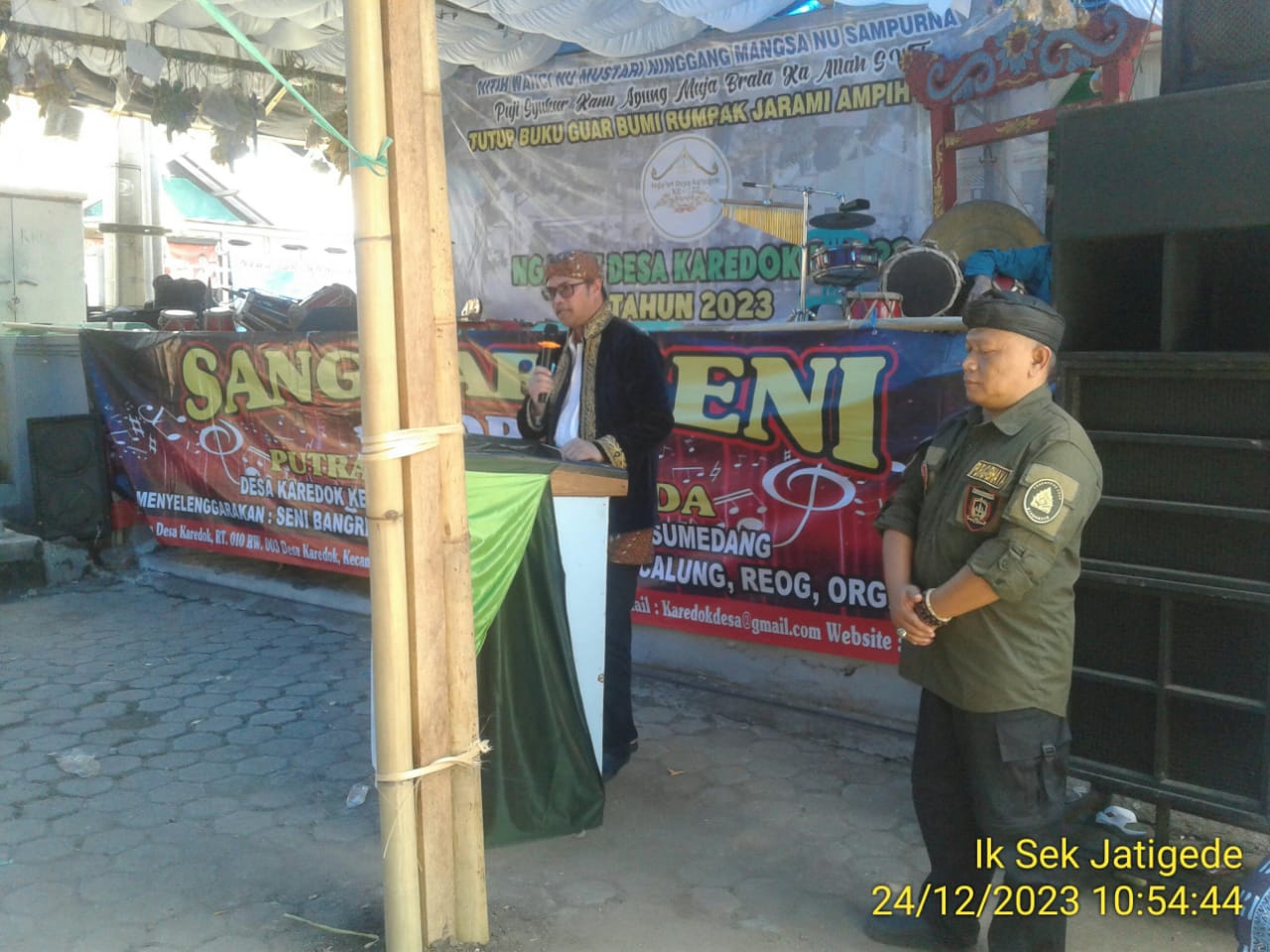 Hadir pula Perwakilan Disparbudpora Bidang Kebudayaan Kab. Sumedang Sdr. Suhadi, Dewan Kebun Kab. Sumedang, Camat Jatigede Wudan Lukmanul Hakim, S.STP., M.Si., Kepala Desa Karedok Sdr. Waluyo, Bhabinkamtibmas Bripka Wanda Sonjaya, Babinsa Setru Heri Rudianto, Radya Anom Raden Luky Djohari Soemawilaga, GM Mahapatih Lili Djamhur Soemawilaga, Ketua Lembaga Adat (LAD) Desa Karedok Sdr. Ujang Ruhiyat, Ketua Panitia Sdr. Iri, Paguyuban Seniman Budayawan Sumedang dan Warga Masyarakat Desa Karedok.